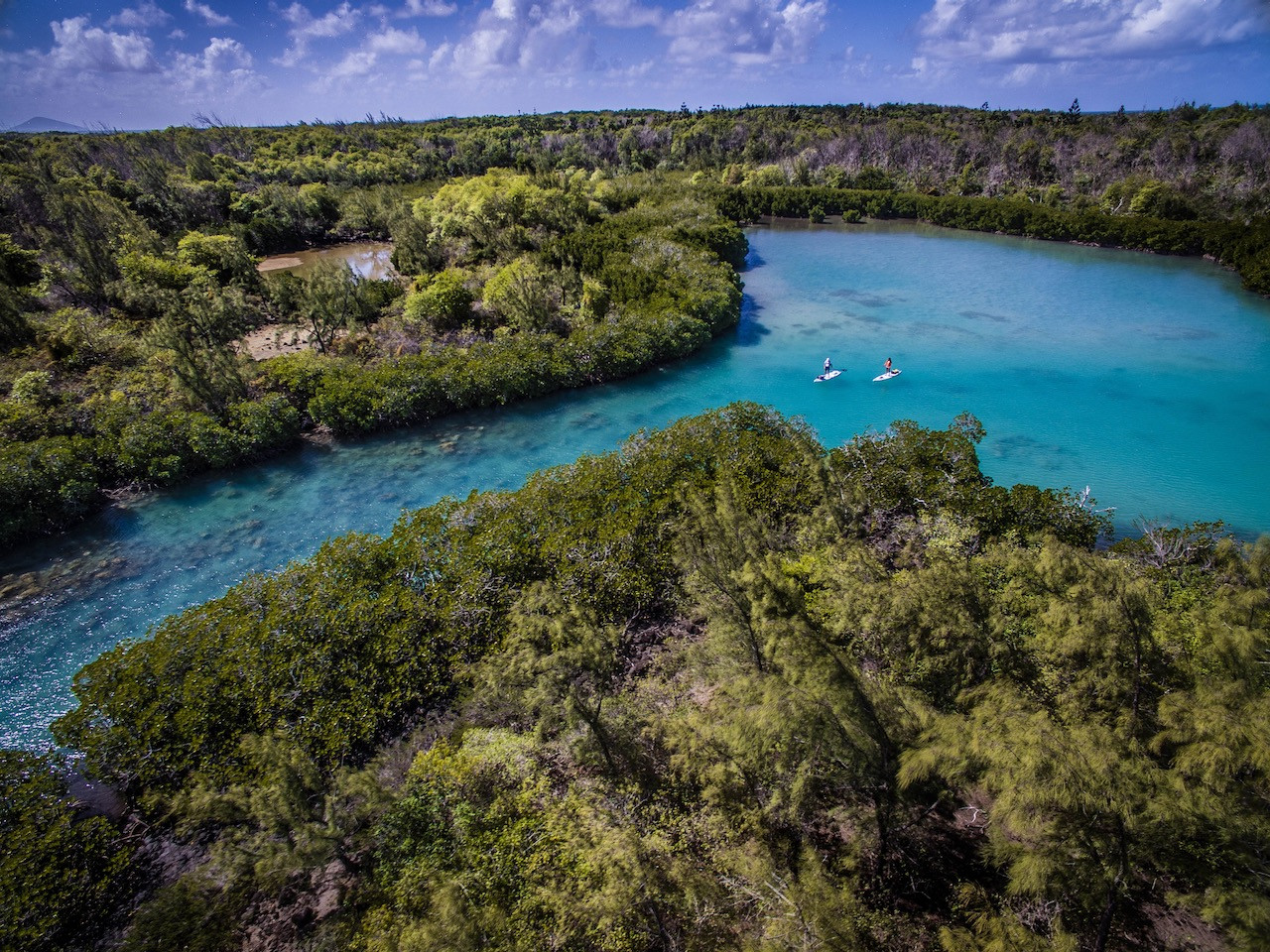 Touring in the true spirit of adventure often means extended time on your board, sometimes over half a day or more, whether gently cruising inland waterways or sheltered coastal waters. Typically, you'll want to take provisions, such as food, water, extra clothes, and perhaps even a small tent, stored within a dry bag secured to the deck. The board must have outstanding stability to conserve paddler energy, balanced with speed, glide, and adequate volume to support you and your supplies. Our high-volume Adventurist 12'6 and 14' designs offer the best of both worlds. The relatively low freeboard presents less windage and reduces the 'corky' feeling underfoot, deck scuppers (drains) assist with drainage, and bow-mounted deck elastics secure up to 25 kg of cargo.