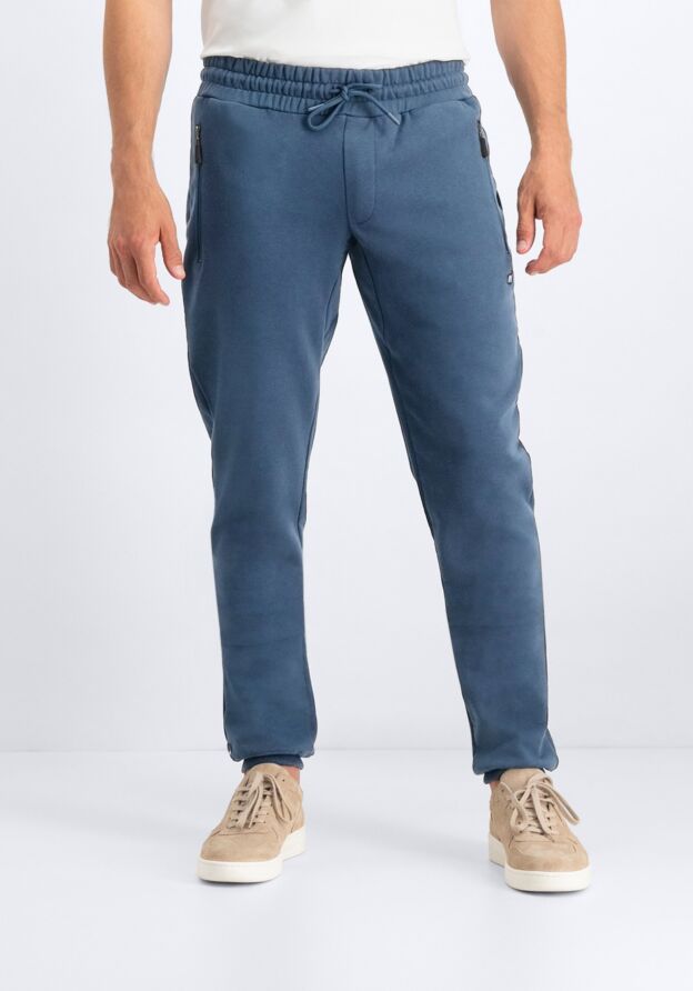 Wide elasticated waist band for added comfort with drawstring. Zippered side pockets for added security and an open-cut rear pocket. Elasticated cuffed ankles for an anti-ride-up with tapered legs.