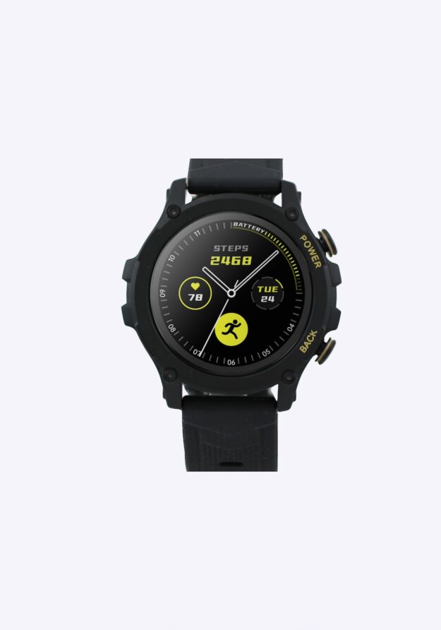 The rugged good looks of the Mistral sports fitness watch SMT-X050 are complemented by its high-performance metrics, suiting the active lifestyle of the most demanding user, who is actively busy at work and play.