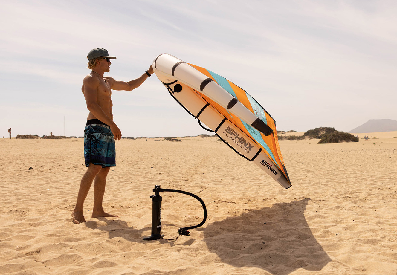 The perfect companion and next-level foiling experience requires the simple addition of a wing to harness the wind. This demonstrates the ability to ride waves on super low wind days to take advantage of the wind's energy on days when the winds freshen. We have a comprehensive range of wings to suit different budgets and needs from 3.5m to 6.5m. Easy to stow and travel with wings can be used with various boards on ice, snow or land.