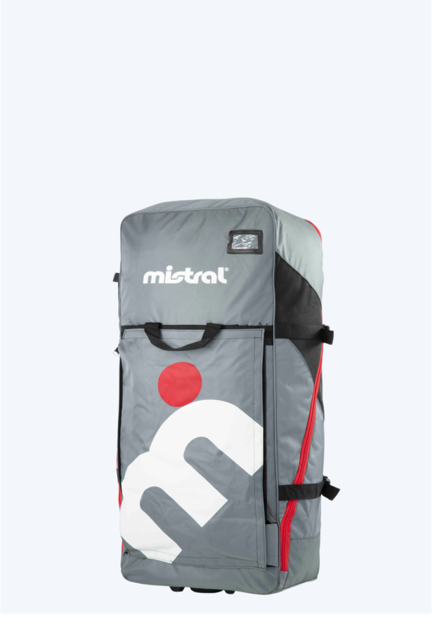 Large inflatable wheeled SUP bag. Durable roller wheels, internal securement straps, multiple handles, back packstraps, wide mouth easy entry.